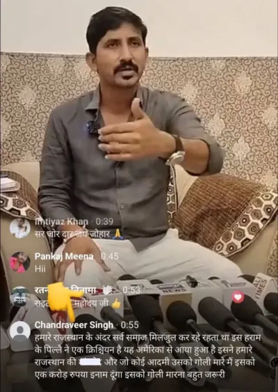 सांसद राजकुमार रोत: को मिली जान से मारने की धमकी यूजर ने लिखा – “यह क्रिश्चियन, अमेरिका से आया है... गोली मारो, 1 करोड़ दूंगा”