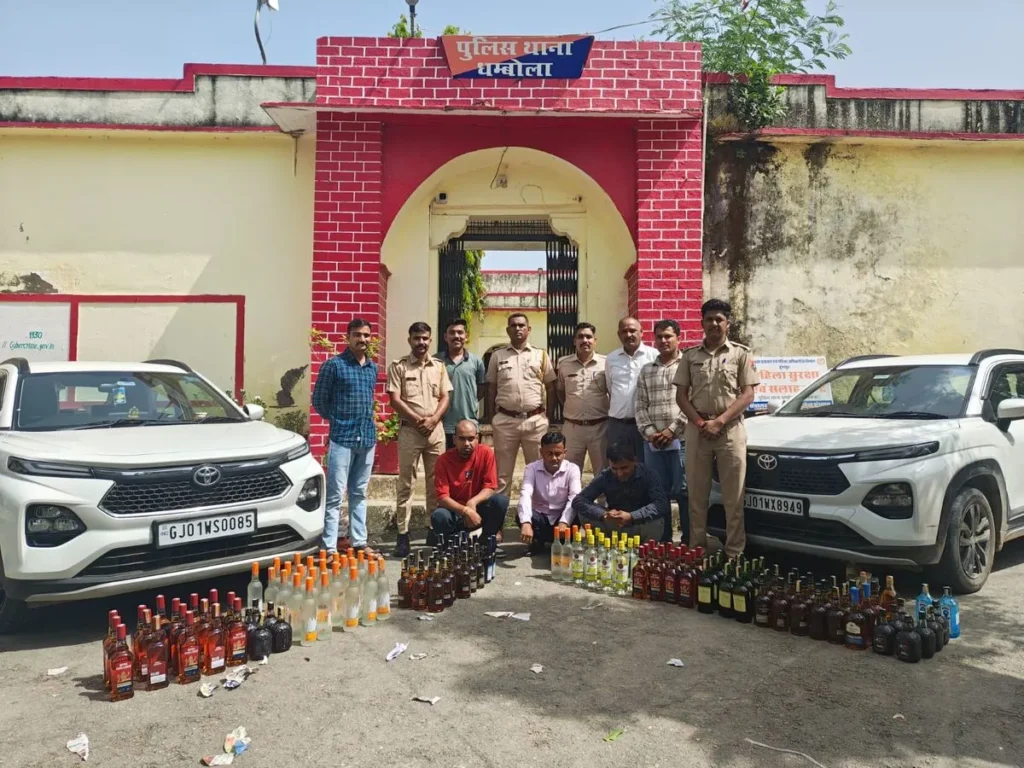 बुधवार को धंबोला थाना पुलिस ने थाने के बाहर नाकेबंदी के दौरान दो लग्जरी कारों को रोका, जिनसे भारी मात्रा में शराब बरामद हुई।